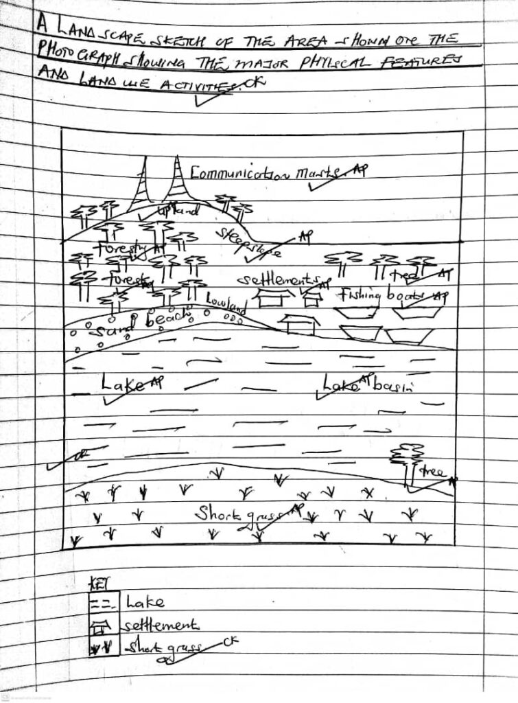 ITEM 2: Recently a Geography department at Tuwangudde SS in bukiwe district carried a field work trip in the area shown in the photograph below on how physical environment has affected land use activities in the area and the problems faced by people living in the area.Unfortunately some few students missed this education research tour because of unavoidable reasons on that very day of the trip.The Geography department decided to formulate groups of about 10 students in each group with in senior three class after the trip and tasked them to provide a relevant report concerning the relief of the area, findings on how the physical environment has affected the land use activities and the problems faced by people living in the area. A group cordinator of that specific group that missed the field work trip has contacted you to provide him with the relevant report before their Geography teacher meets them in their Next lesson